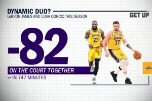 当詹姆斯与东契奇同场时,他们的正负值是湖人全队本赛季任一双人组里最差的负82;