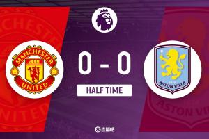 上半场伤停补时1分钟,半场结束,曼联暂0-0维拉。