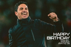 阿森纳官推晒出海报,并写道:“生日快乐,阿尔特塔!”