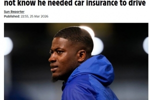 切尔西旧将不知开车要投保且再次无证驾驶,法官斥责:你该长大了