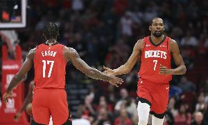 本场比赛,火箭前锋杜兰特拼尽全力,出场37分钟20投12中,三分8中2、罚球6中6空砍32分6篮板8助攻2盖帽,正负值+5。