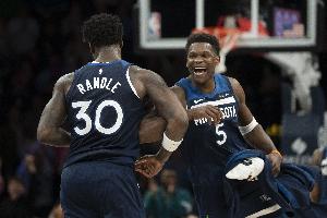 此役过后,森林狼喜提四连胜,战绩来到39胜23负,胜场数追平西部第三的火箭(38胜22负),领先西部第五的掘金(38胜24负)1个胜场!